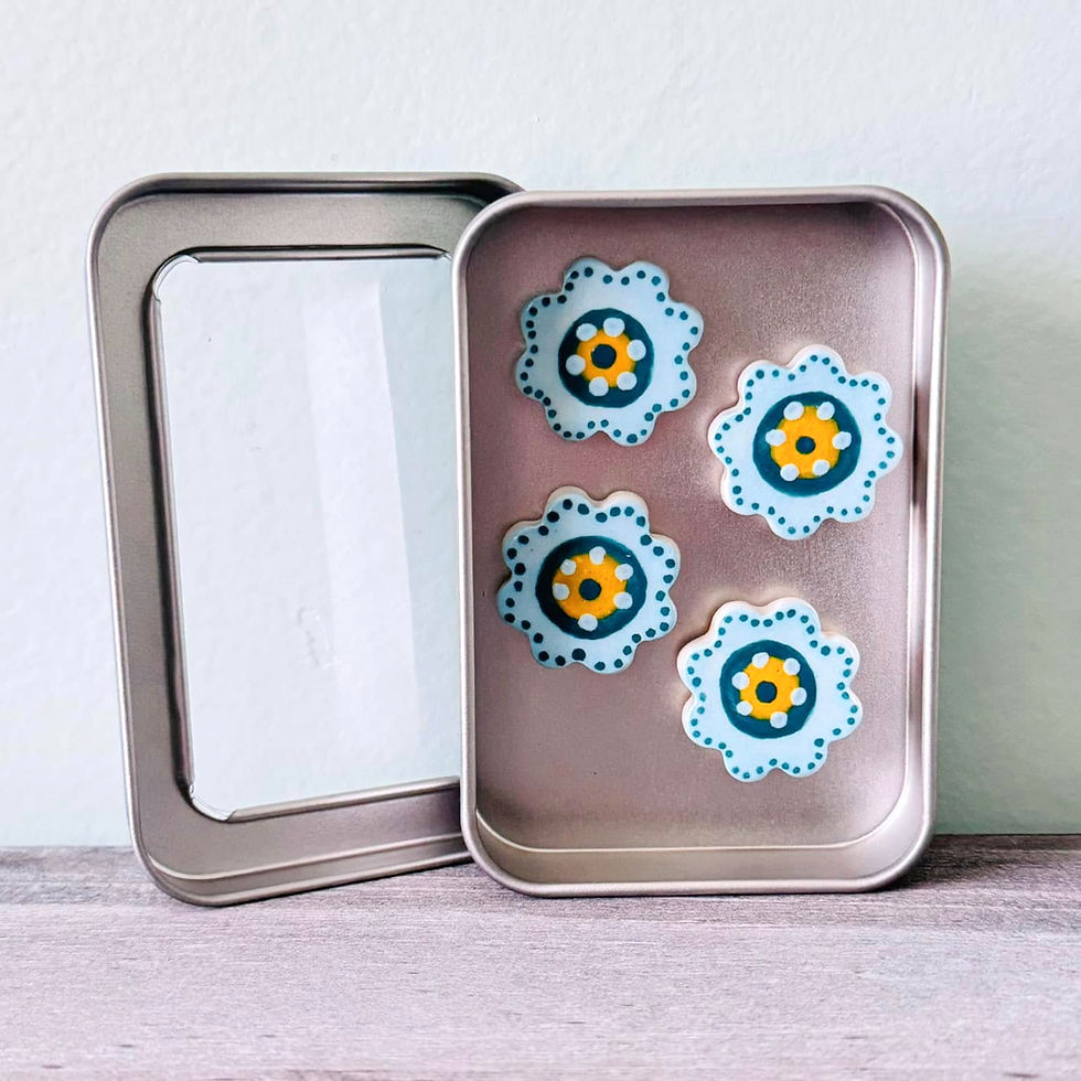 Set of 4 Porcelain Magnets - Blue Flowers